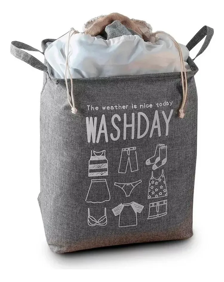 Bolsa organizadora para ropa con diseño moderno y funcional, ideal para el hogar. Confeccionada en tela resistente tipo lino, permite almacenar ropa sucia, prendas limpias, toallas, sábanas o textiles varios manteniendo el orden en dormitorios, baños o lavaderos. Cuenta con sistema de cierre mediante cordón ajustable que ayuda a ocultar el contenido y evitar que la ropa se caiga.